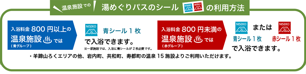 【注意事項】 ・飲食の出来る休憩場所は御座いません。・入浴には青シール2枚が必要となります。・2023年12月11日~2024年3月31日までニセコ湯めぐりパス利用不可
