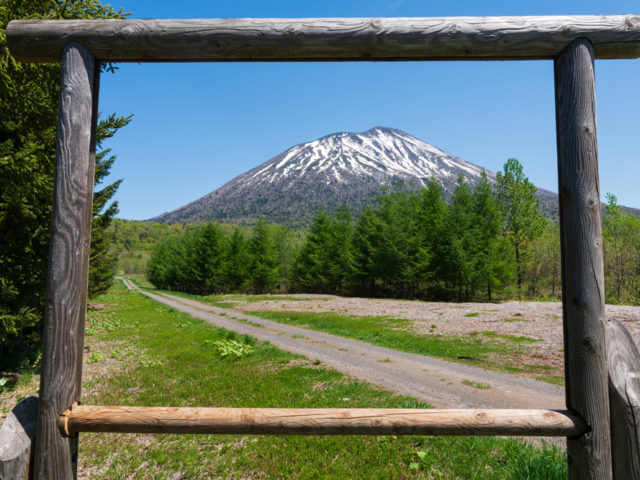 「みらいの森」は、自分たちの手で山づくりをしてみたい・木を育ててみたいと思われている方たちに活動していただくための森林ボランティアの活動フィールドです。木のフレーム越しの羊蹄山がおすすめ!