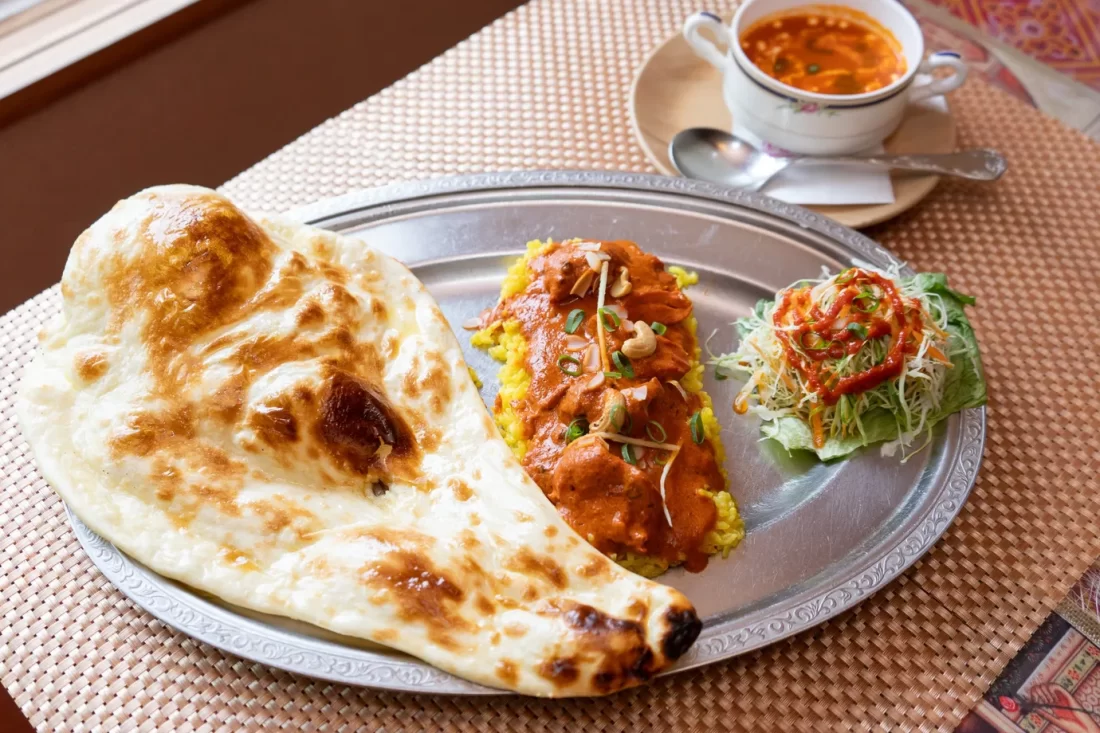 北インドの本格的なインドカレーが楽しめます。今年で43周年を迎え、インドカレー店として北海道に初出店し、道内4店舗を展開しています。一番人気はバターチキンカレー。好評のナンと一緒に、ぜひご堪能ください。