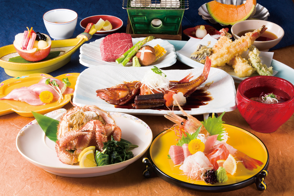 和食レストラン|五色・昆布・モイワ メイン料理は料理長こだわりの3品(お造り盛り合わせ、陶板料理、お肉又はお魚)の中から選び、前菜や御飯、デ…