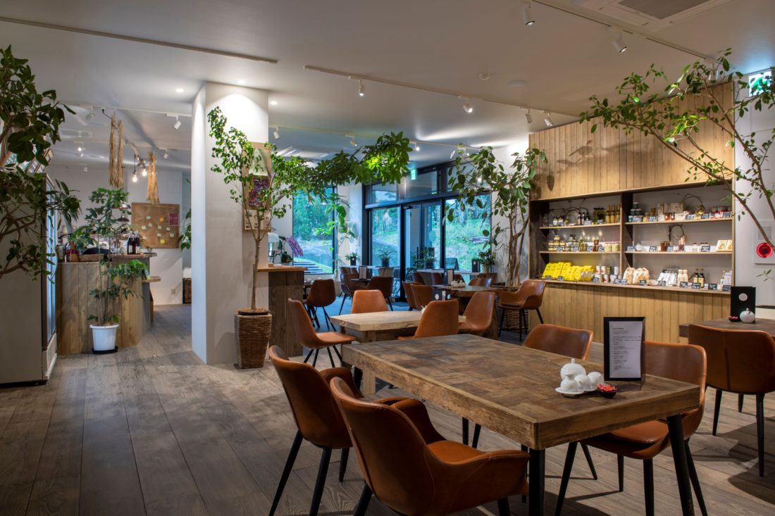 コーヒーや焼きたてのパン、デザート類をご用意しています。カフェ内にはニセコのお土産にぴったりなメイドインニセコの雑貨をそろえたショップもあり、滞在をより快適にしてくてるアイテムなども販売しています。