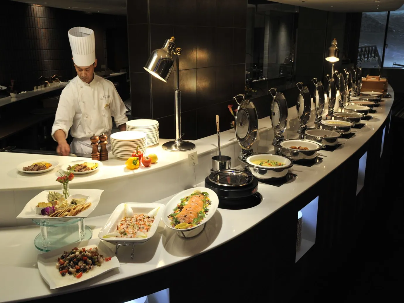 北海道産食材を中心に、和牛やシーフード、新鮮野菜が目の前で調理される醍醐味を。